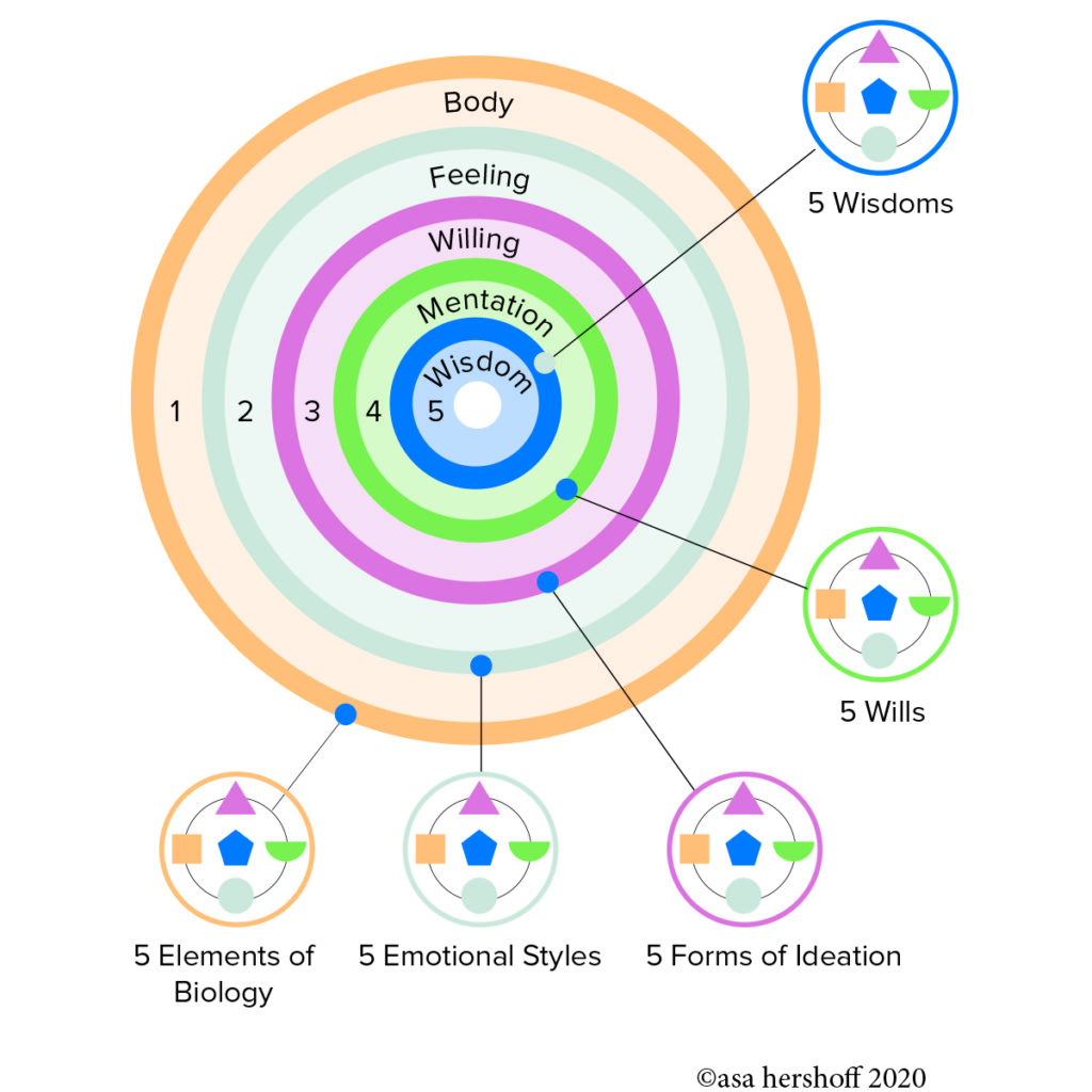 Here though, we can are suggesting a simpler, but no less effective method, and one that s also ancient in its provenance. The five element protection circle is inherently the same as using the crystal vajra, which itself represents the Five Wisdoms and the five Buddhas families in male and female expression. The pure element approach is particularly valuable and accessible, because each of the five layers of our protective sphere has a meaning, a purpose and its own special relation to our mind, body and activities. In order to create our sungkor we surround our selves with five sphere, like cosmic bubbles, one inside the other. We start from the inside and work our way out to the periphery. The Elements, being the basis of all we know and all we see, are a vast topic, and in spite of the experience of sages, scholars and healers for thousands of years, there are many books yet to be written on the subject. Here we are merely sketching out some basic ideas about Elemental characteristics and their effects, a framework for future investigations.